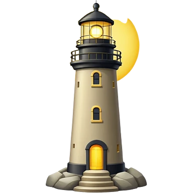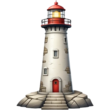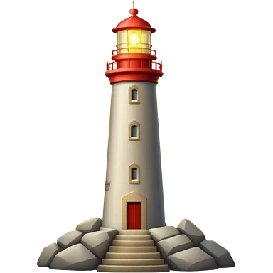 Tokarevsky lighthouse, rocky coastline, sea waves crashing, tower with light beam, maritime navigation symbol emoji
