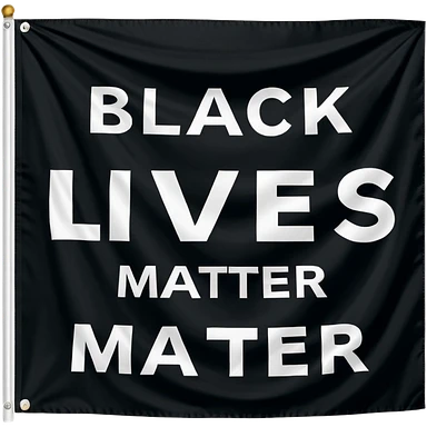 Black lives matter flag; top third of flag is black and has bold white text saying "BLACK". Middle third is white with bold black text saying "LIVES", and bottom third is black with bold white text saying "MATTER" emoji