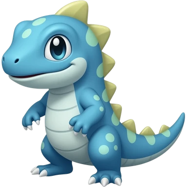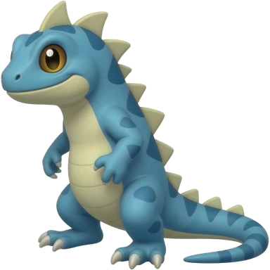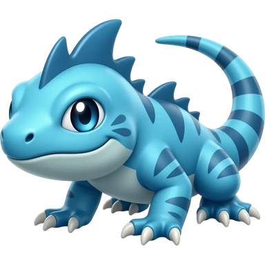 A Cyan Shiny Glossy Lizard-Reptile-Salamandrian-Fakémon with dark-blue patterns and light-green belly Full Body emoji