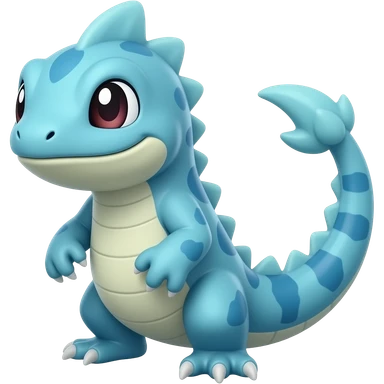 A Cyan Shiny Glossy Iridescent Anthro-Scalie-Lizard-Reptile-Salamandrian-Fakémon with dark-blue patterns and light-green belly Full Body emoji