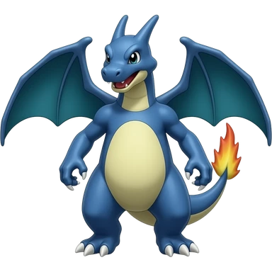 blue Cool edgy Greymon-Charizard-Digimon, full body emoji