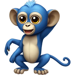 Blue circle head with green iris eyes and blue monkey ears and smile emoji