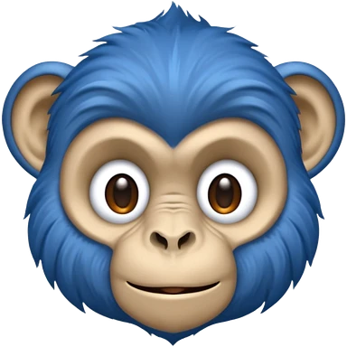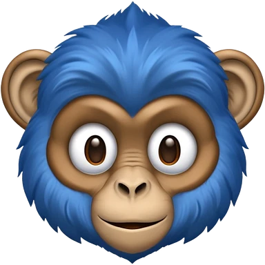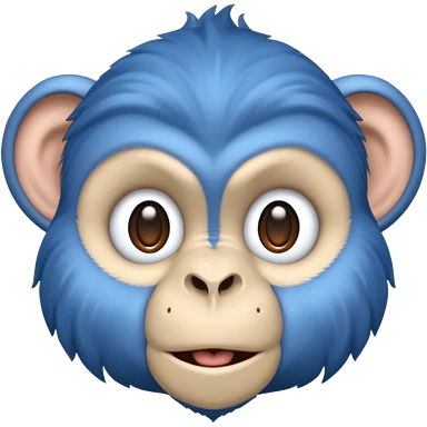 Blue circle head with green iris eyes and blue monkey ears and smile emoji
