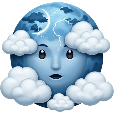blue moon with no face and with clouds with snow and thunder with no face too emoji | AI Emoji Generator