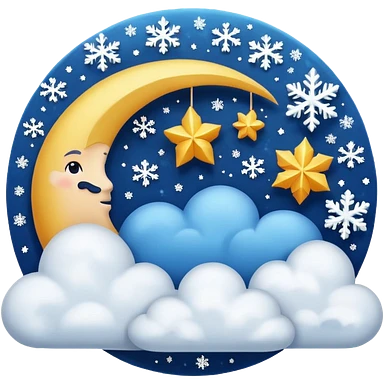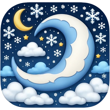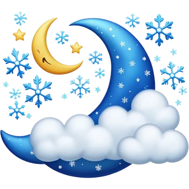 blue cressent with no face and with clouds with snow and thunder with no face too emoji
