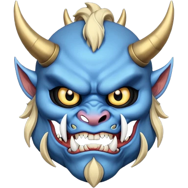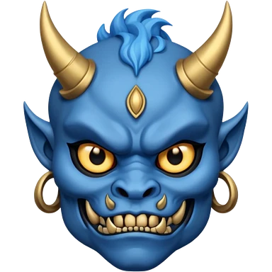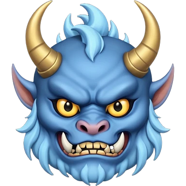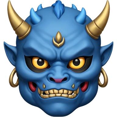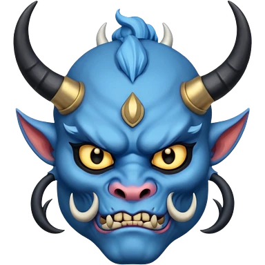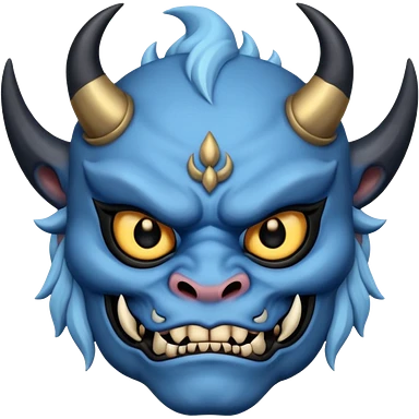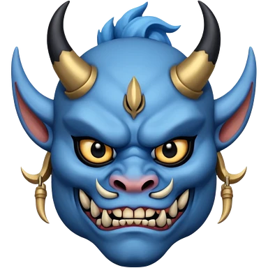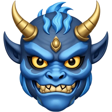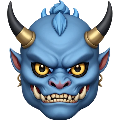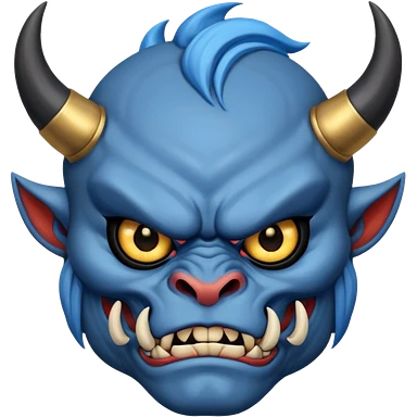 blue oni with black eye and gold iris emoji | AI Emoji Generator