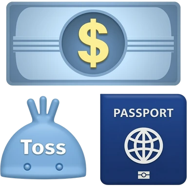 money with ‘Toss’ written instead of a dollar sign and a blue passport emoji