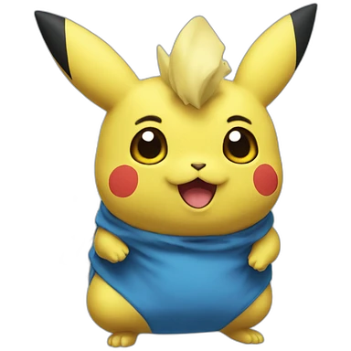 pikachu in blue train station manager suit wearing blue cap with pokemon symbol emoji