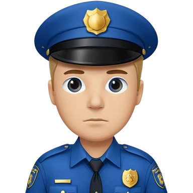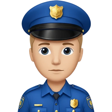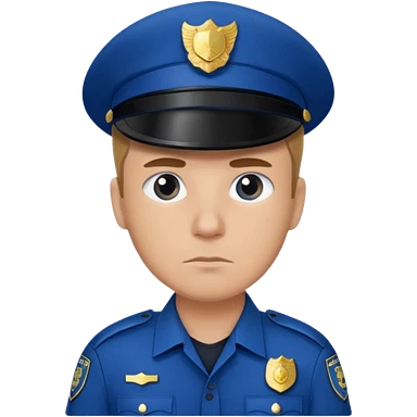 A police officer with dark skin tone, wearing a dark blue police cap with a silver badge in the center, short black hair mostly covered by the cap, large brown eyes, a small black mustache, and a neutral expression. emoji