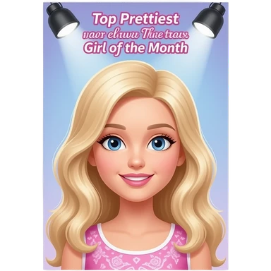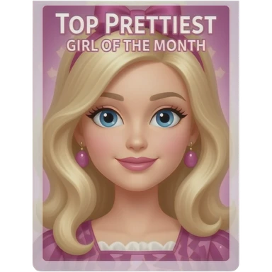 A dreamy Barbie-style salon poster titled “Top Prettiest Girl of the Month” emoji