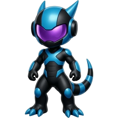 a black-blue Genesect-Raptor-Fakémon—hybrid with a futuristic visor-helmet full body emoji