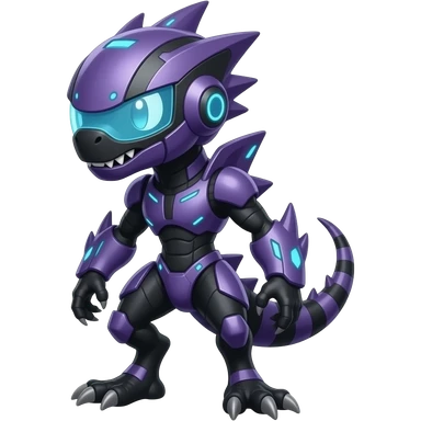 a black-blue-purple Genesect-Raptor-Fakémon—hybrid with a futuristic visor-helmet full body emoji