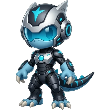 Cool Edgy Futuristic Black Blue Digimon-Fakemon-Raptor-Dragon-Mecha full body emoji