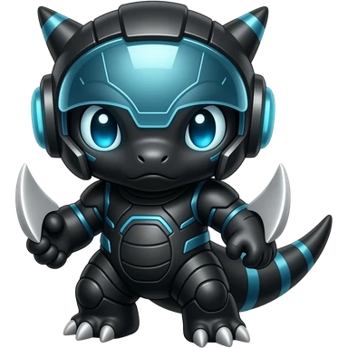 a black-blue Genesect-Raptor-Fakémon—hybrid with a futuristic visor-helmet full bodya black-blue Genesect-Raptor-Fakémon—hybrid with a futuristic visor-helmet full body emoji