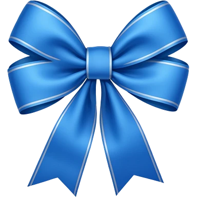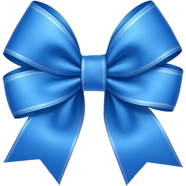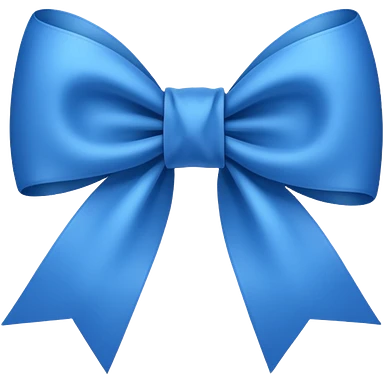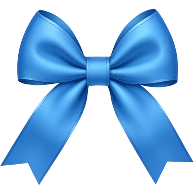 A beautifully tied blue ribbon bow, highly detailed, with a silky and elegant texture, set against a clean, minimalistic background. The ribbon has a soft shine, reflecting light gently, giving it a luxurious and realistic appearance. The bow is symmetrical and well-crafted, with smooth curves and flowing tails emoji