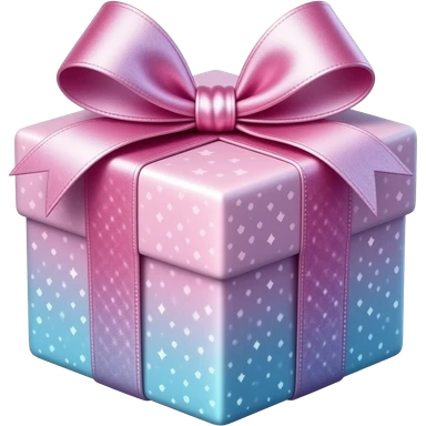 Hyperrealism, highly detailed wrapped gift, with realistic detailed Luxury style ombre pink to blue sparkling girly ribbon, high definition, must have no emoji icons, no emoji symbols emoji