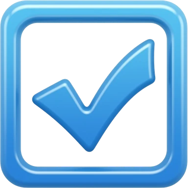 BLUE square with a white checkmark inside make the square fully a square and its tilted a little left emoji