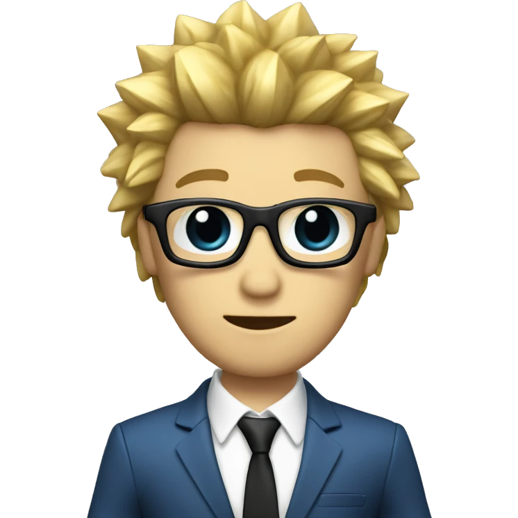 blue spikes on the suit, black glasses, blond hair, full photo, chopping, microphone emoji | AI Emoji Generator