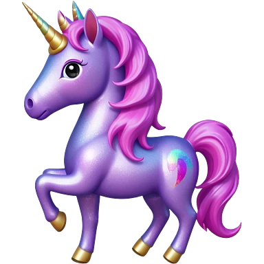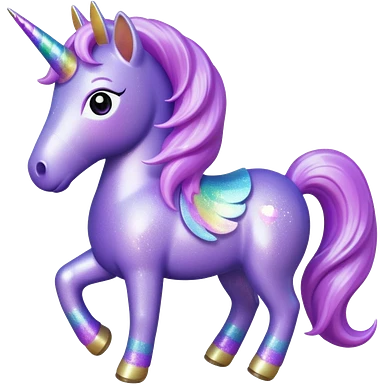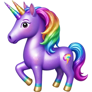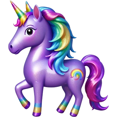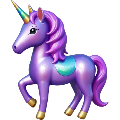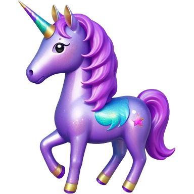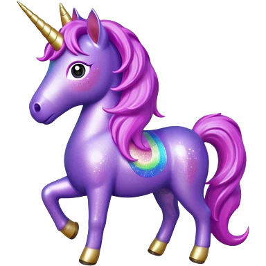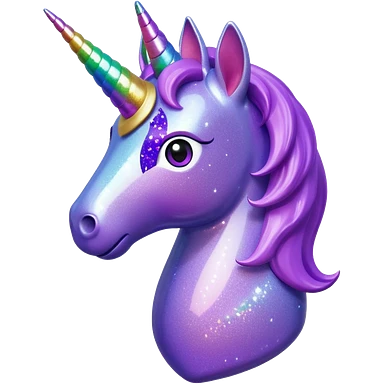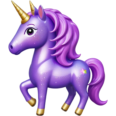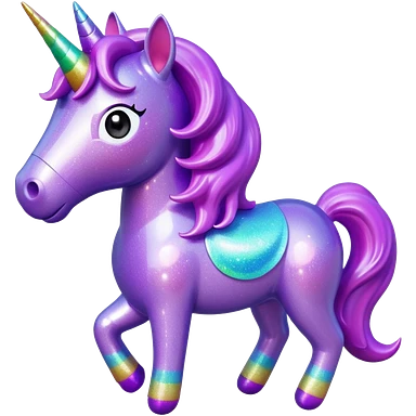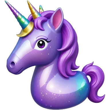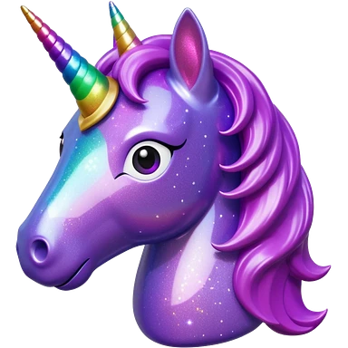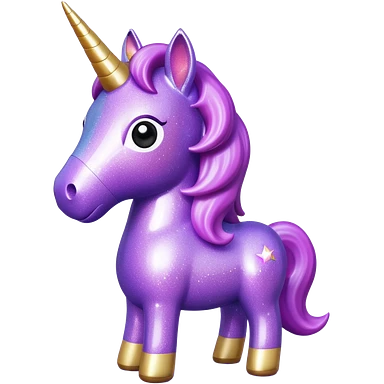 purple gliter unicorn toy facing camera emoji