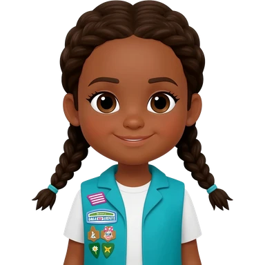 5 year old, fair skinned african american with braids, Daisy girl scout in Daisy blue best emoji