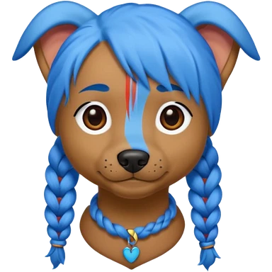 blue haired dog with braids emoji