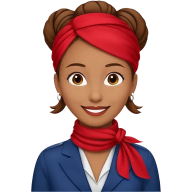 flight attendant, Light Brown skin, brown hair in a bun, neck scarf emoji