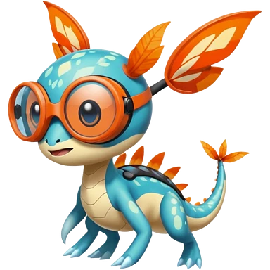Bluish Splash-patterned emotional sparky sparky boom boom painful Meloetta-Guilmom-Salandit-Flygon-Pokémon-Fakémon-fusion-hybrid-creature with orange goggles on eyes emoji | AI Emoji Generator