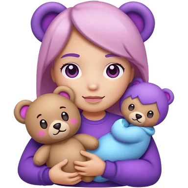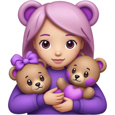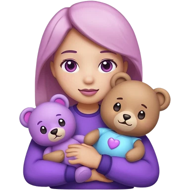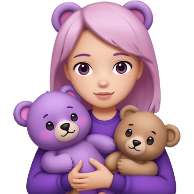blushing emoji holding bear plushie but it’s purple tinted emoji