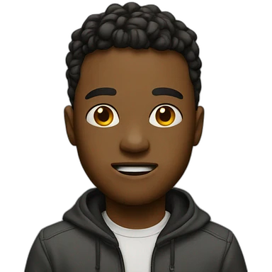 a girl with black hair and green eyes and a boy with brown hair and brown eyes holding hands, both blushing, emoji style emoji