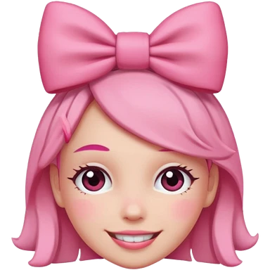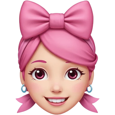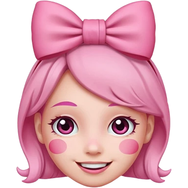 Blushing emoji with bows on the both side of the head with the two middle fingers emoji