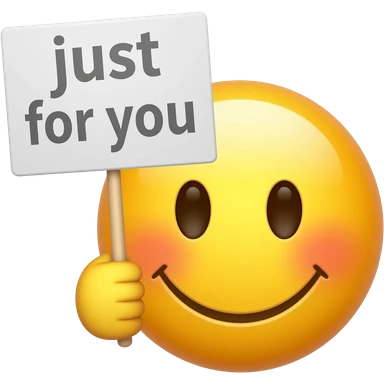 Blushing yellow smiley face holding up a sign that says "just for you" emoji