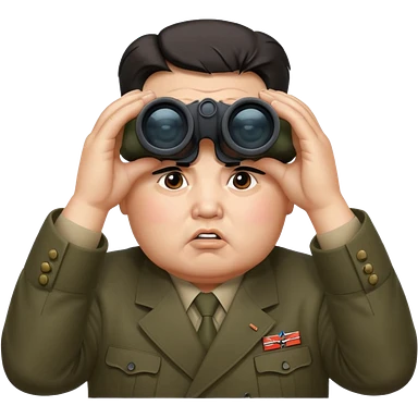 Kim Jong Un staring through binoculars with angry expression emoji