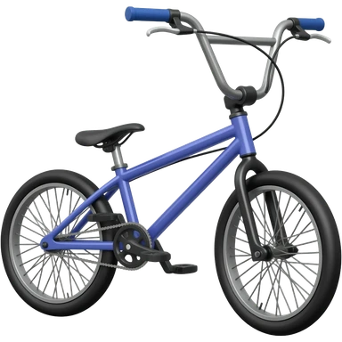 BMX bike with chrome frame, side view, small wheels with fat tires, high rise handlebars, pegs on axles, iOS emoji style emoji