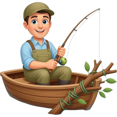 a fisherman in a boat with his line snagged on a tree emoji