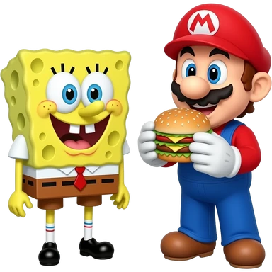 Bob Esponja e Mario comendo hambúrguer na Domino's Pizza. emoji