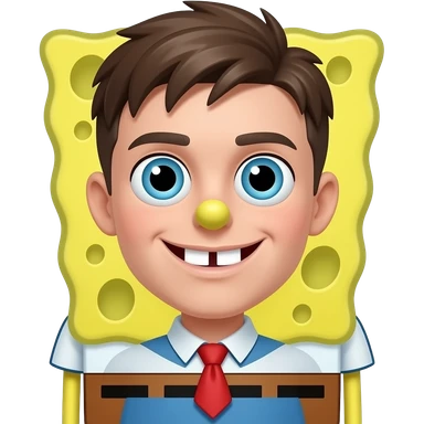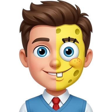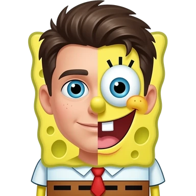 garoto com rosto oval e levemente definido que é metade Bob esponja emoji