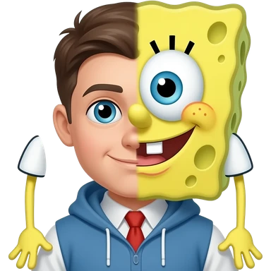 garoto com rosto oval e levemente definido que é metade bob esponja emoji
