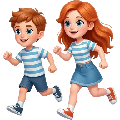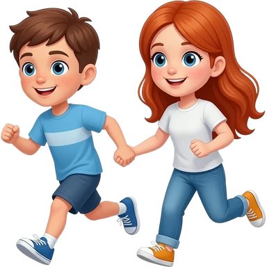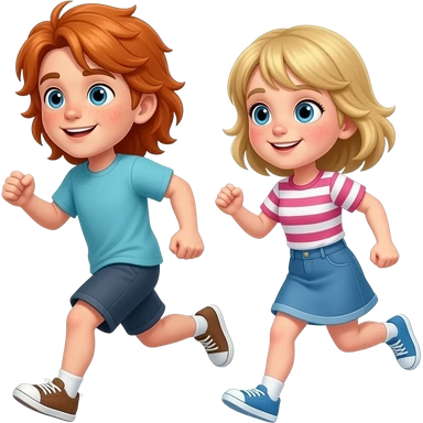 fesme uns nen i una nena corrents amb pecas i cabell una mica rubio amb ulls blaus una mica mes gran que el noi amb cabell llarg i ros i que siguin germans emoji