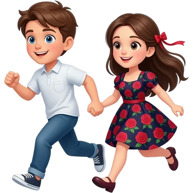 fesme uns nen i una nena corrents amb ulls blaus i la nena amb cabell llarg i amb un ros fosc i que siguin germans emoji
