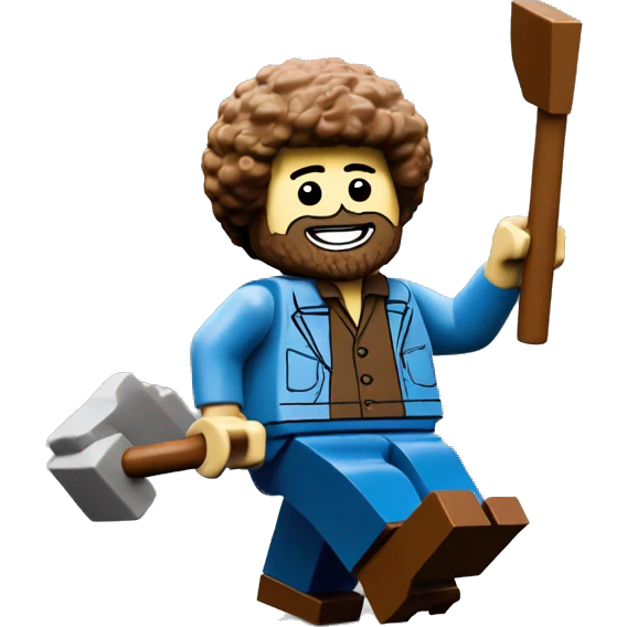 Bob Ross in a lego style dancing on a plow emoji | AI Emoji Generator