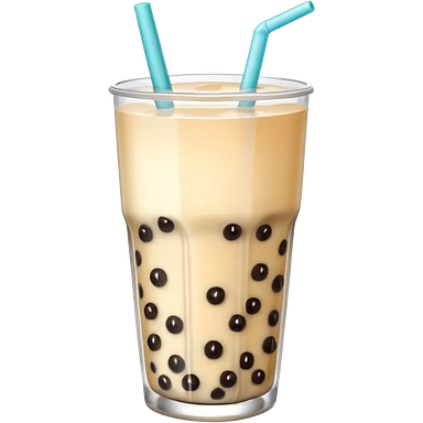 Boba with pink straw, pink syrup, popping balls and ice cream scoop emoji