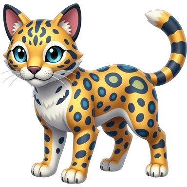Shiny Colorful Bobcat-Caracal-Leopard-Genet-Pokémon-Digimon-Fakémon-fusion-hybrid-creature emoji