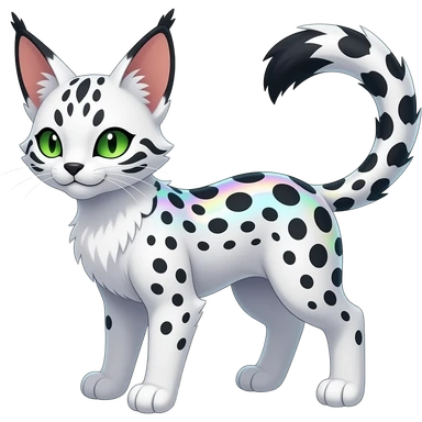 Colorful Iridescent Albino Melanistic Bobcat-Caracal-Leopard-Genet-Pokémon-Digimon-Fakémon-fusion-hybrid-creature emoji