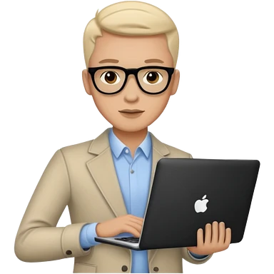A typical IT specialist, a guy who looks stylish, has a laptop in his hands emoji