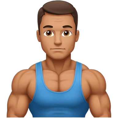 Bodybuilder enormous shoulders chest and neck guy with green eyes and brown hair model face no smile emoji