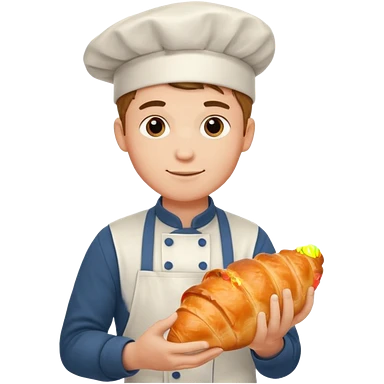 Young male baker – holding a croissant emoji