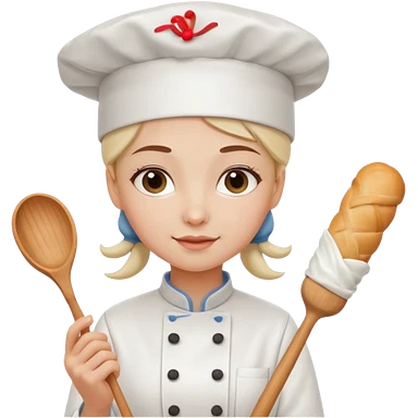 Young female baker – wearing white chef hat, holding a piping bag emoji