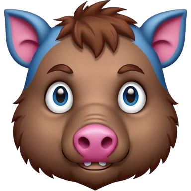 boar face, blue eyes, pink nose emoji