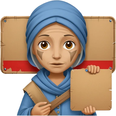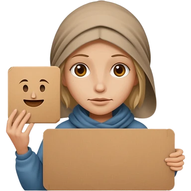 begger woman with holding a pancart emoji
