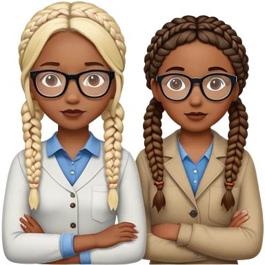 band class with a black girl with bohemian braids and glasses and a white teacher with short blone hair and glasses and another black girl with braids and another medium sized girl with briads and a white girl with red highlights and brown hair emoji